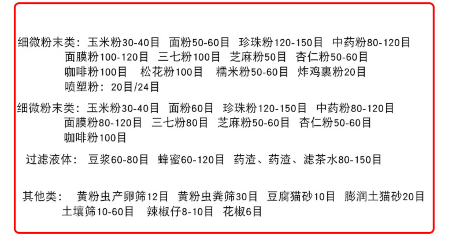 | 目數(shù) | 孔徑(mm) | 目數(shù) | 孔徑(mm) | 目數(shù) | 孔徑(mm) |
